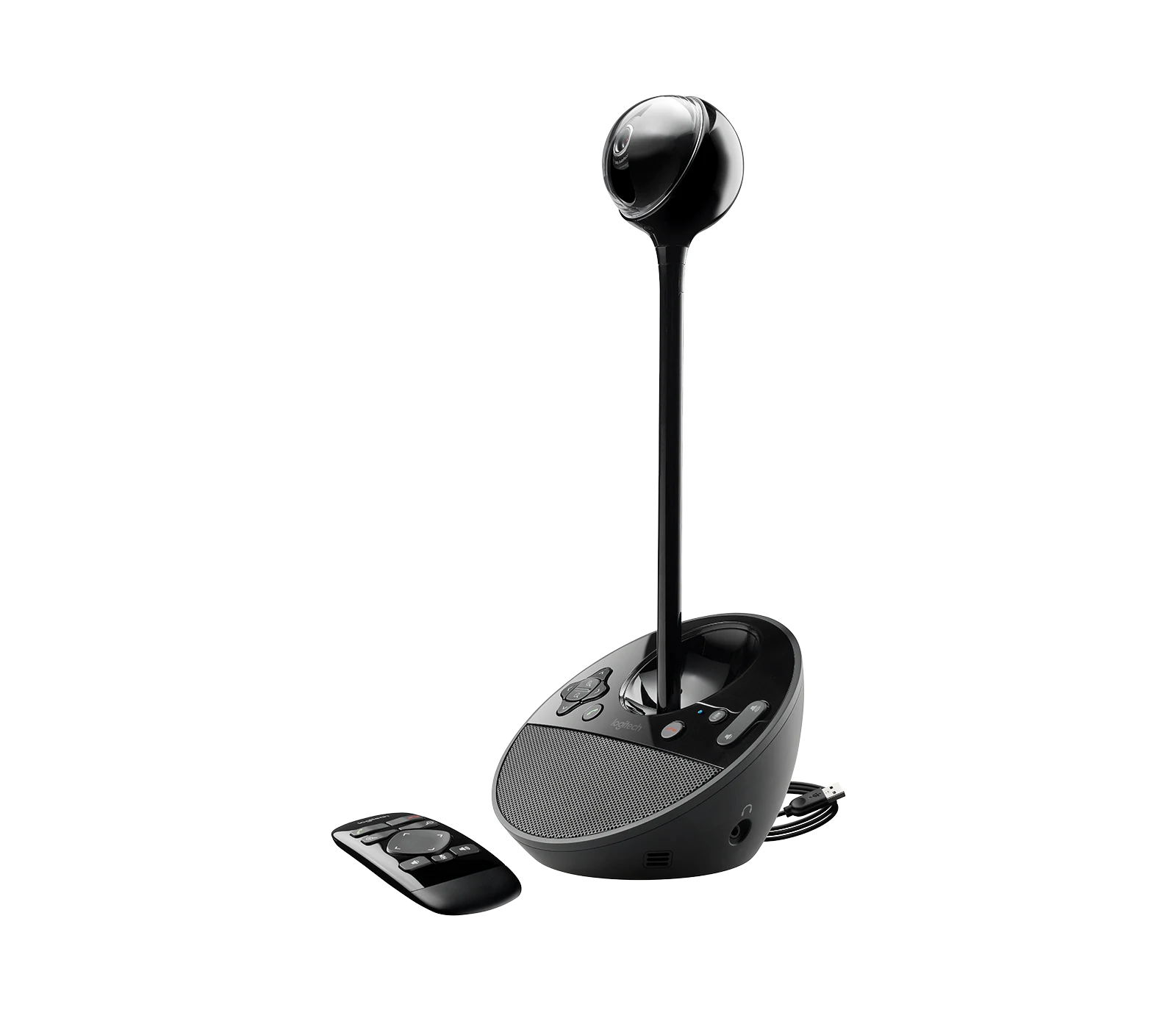 - BCC950 ConferenceCam-voetstuk en aangesloten USB-kabel