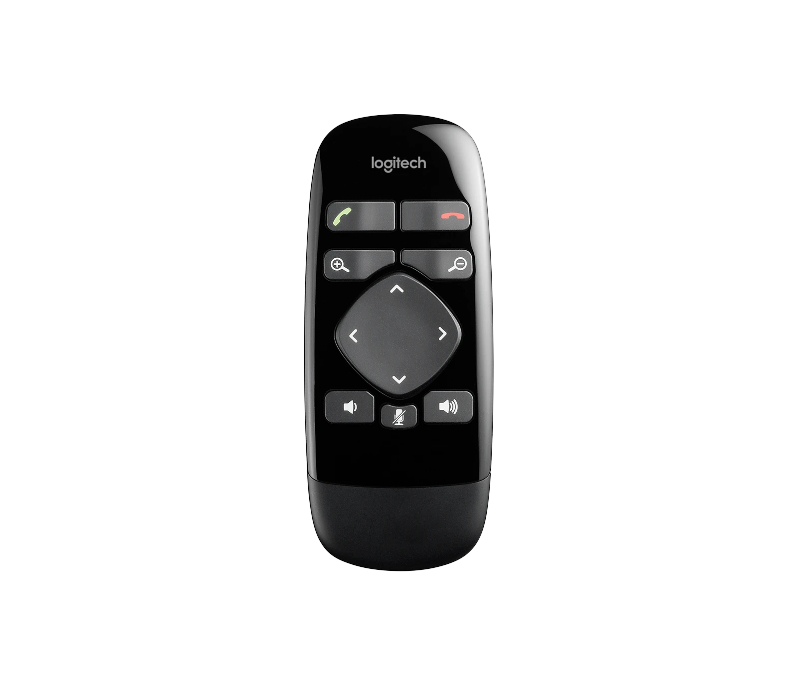 Bedien de camera en audio van de BCC950 op de speakerphone of vanaf de andere kant van de vergaderruimte met de afstandsbediening. Hoe dan ook, die essentiële dempknop blijft binnen handbereik.
